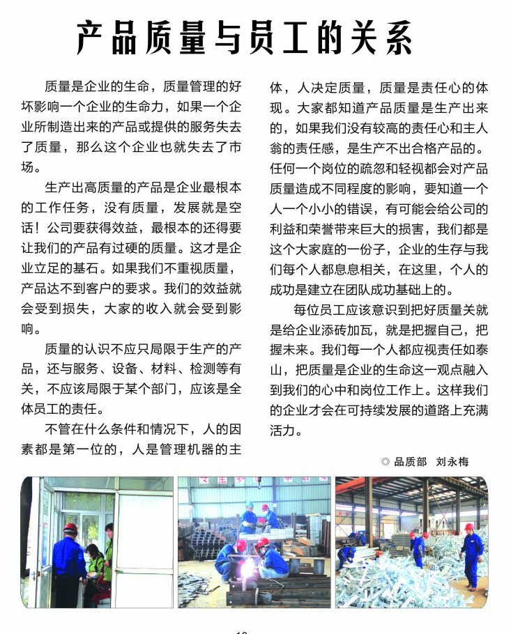 產品的質量與員工的關系